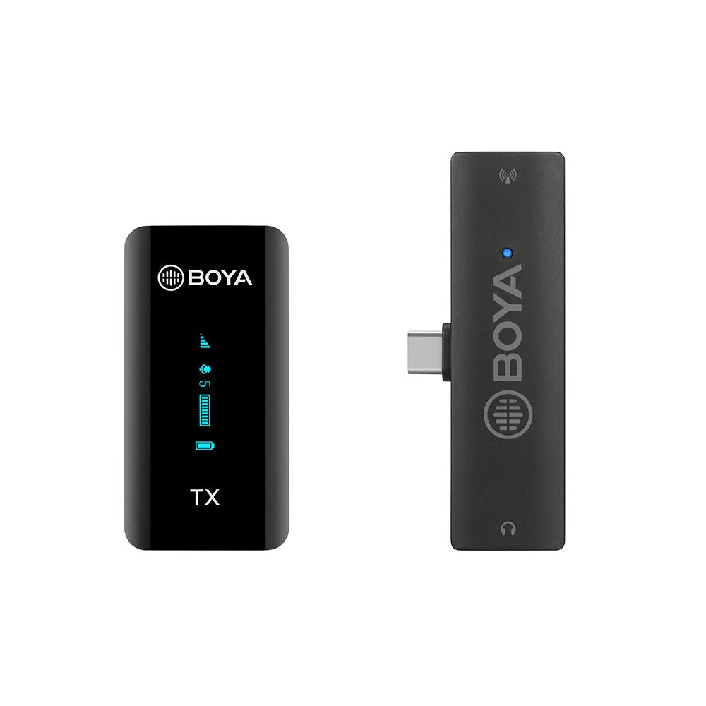 BOYA BY-XM6-S5, bir verici ve bir alıcıdan oluşan 2.4 GHz çift kanallı kablosuz mikrofon sistemidir. Type-C bağlantı noktalarına sahip Android cihazları için yüksek kaliteli ses sağlar. Vlog, içerik oluşturma, canlı akış, kayıt vb. için idealdir.