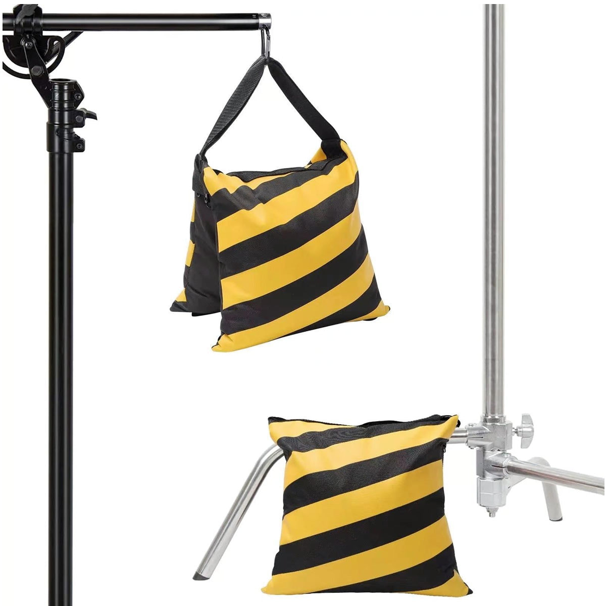 Dayanıklı Oxford kumaş gövdesi, sık taşınan ve sürekli kurulum yapılan setlerde uzun süreli kullanım sunar. Çift kanatlı ve fermuarlı yapısı sayesinde torba, her iki bölmeye dengeli şekilde doldurulabilir. Kum, çakıl veya metal ağırlıklar ile doldurularak farklı kurulum ihtiyaçlarına uyum sağlar.