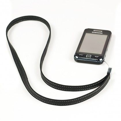 Mini kameralar ve telefonlar için hakiki deriden zeytin rengi boyun askısı.