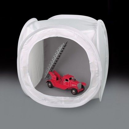Fotoğraflanacak objelerin eşit ve yumuşak aydınlatılabilmesi için kübik şekilli hafif çadır.