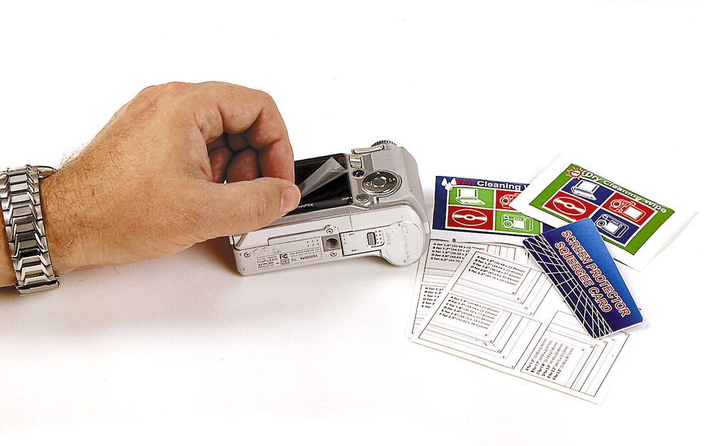 Dijital kameraların, video kameraların, akıllı telefonların, navigasyon sistemlerinin vb. ekranları için koruyucu film. Ekranı çizilmelere, kire ve parmak izlerine karşı korur. Dokunmatik ekranlar için uygundur. Hiçbir kalıntı bırakmadan çıkarılabilir.