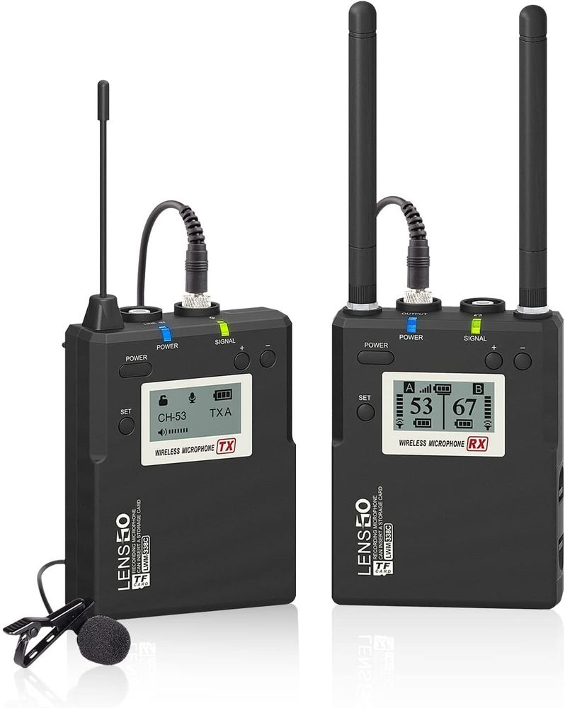Lensgo 338C; Nikon Canon Sony DSLR fotoğraf makineleri, video kamera, iPhone Android akıllı telefon, iPad ve daha fazlası ile uyumlu bir kablosuz yaka mikrofonu sistemidir. Kablosuz yaka mikrofonu, YouTube canlı yayın, Video kaydı, Ses kaydı, Vlog kaydı, Röportajlar, Kısa film kaydı, Podcast'ler, Düğün, Mobil gazeteciler, İçerik oluşturucular, ENG ve EFP vb. için en iyi seçimdir.
