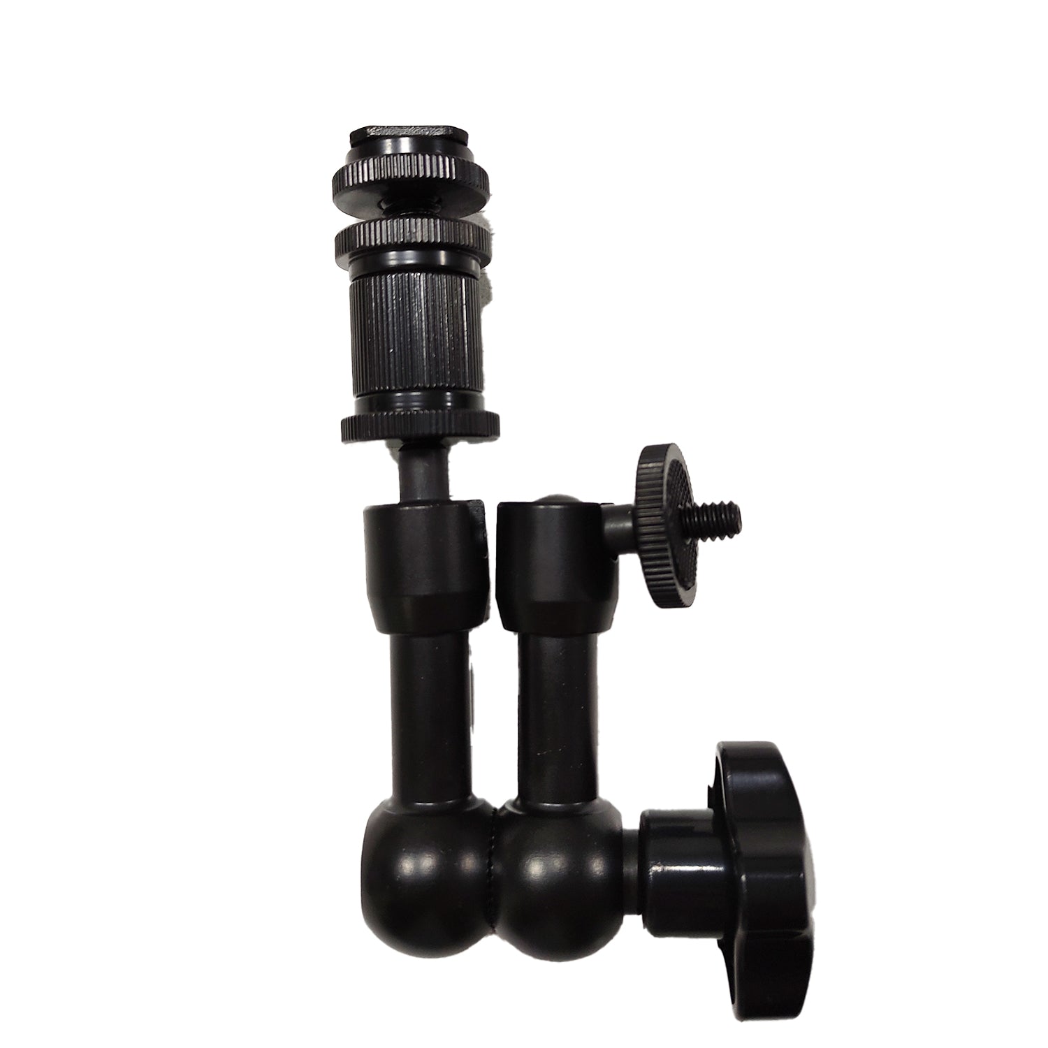 DSLR ve Video Kameralar için Magic Arm (Sihirli Kol) ve Kelepçe Bu pratik set ile DSLR kamera, tripod ve diğer aksesuarlar birbirlerine sağlam bir şekilde bağlanır, şemsiye, ışık, diğer aksesuarlar da aynı şekilde güvenli bir şekilde sistem ile bir araya getirilebilir. Eklemli Kol (Magic Arm) da aynı şekilde bir tripod veya Dolly üzerine rahatça monte edilebilir, kol üzerine de kamera, ışık, monitör vb. aksesuarlar takılabilir. Çok sağlam alüminyum çelik karışımından imal edilmiştir.
