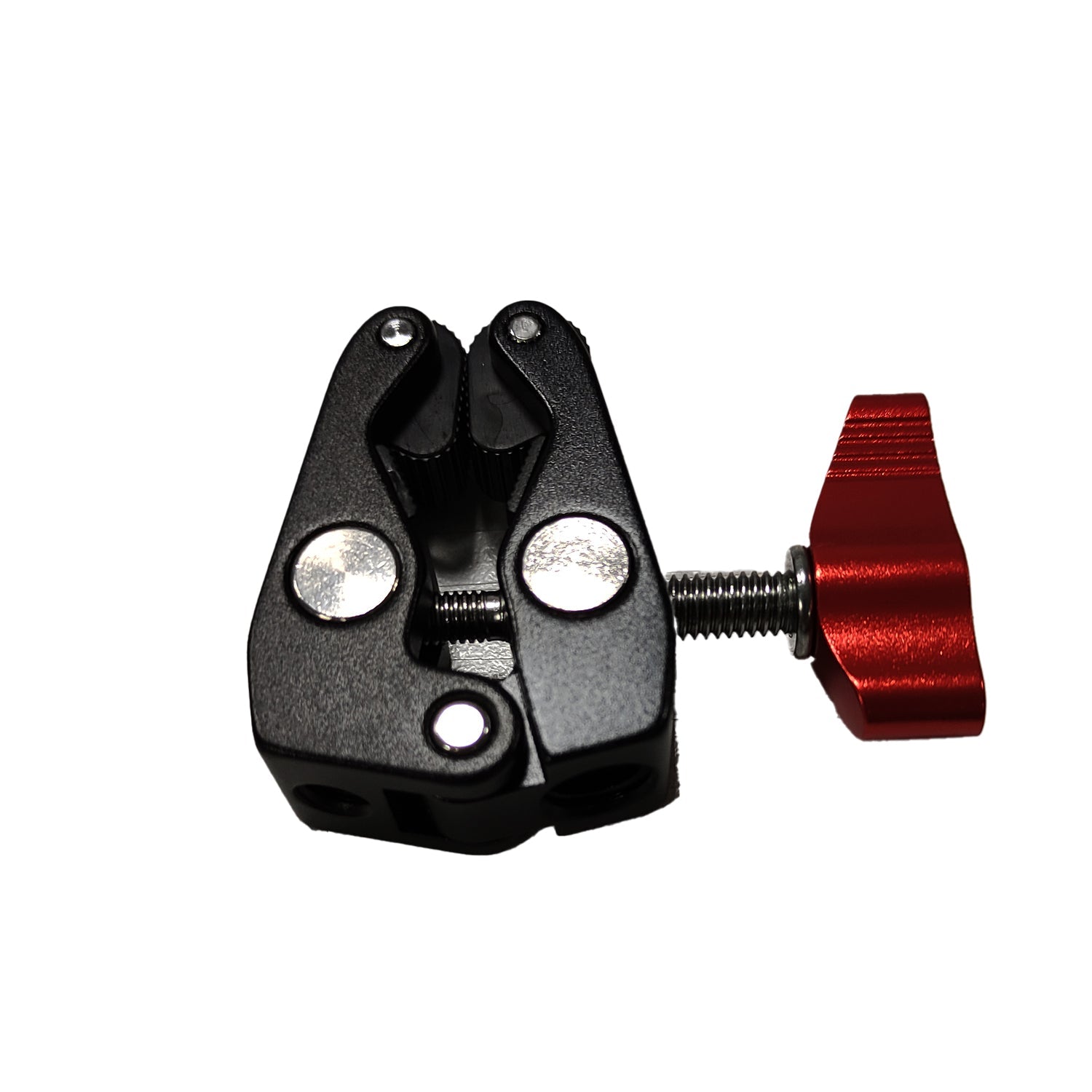 Bu süper havalı kelepçe hafif alüminyum alaşımdan yapılmıştır, 1/4 "-20 ve 3/8" -16 dişlidir ve kameralar, ışıklar, şemsiyeler, kancalar, raflar, düz cam, çapraz gibi hemen hemen her yere monte edilebilir çubuklar, hatta diğer Süper Kelepçeler. Maksimum 40mm ve minimum 15mm açılabilir.